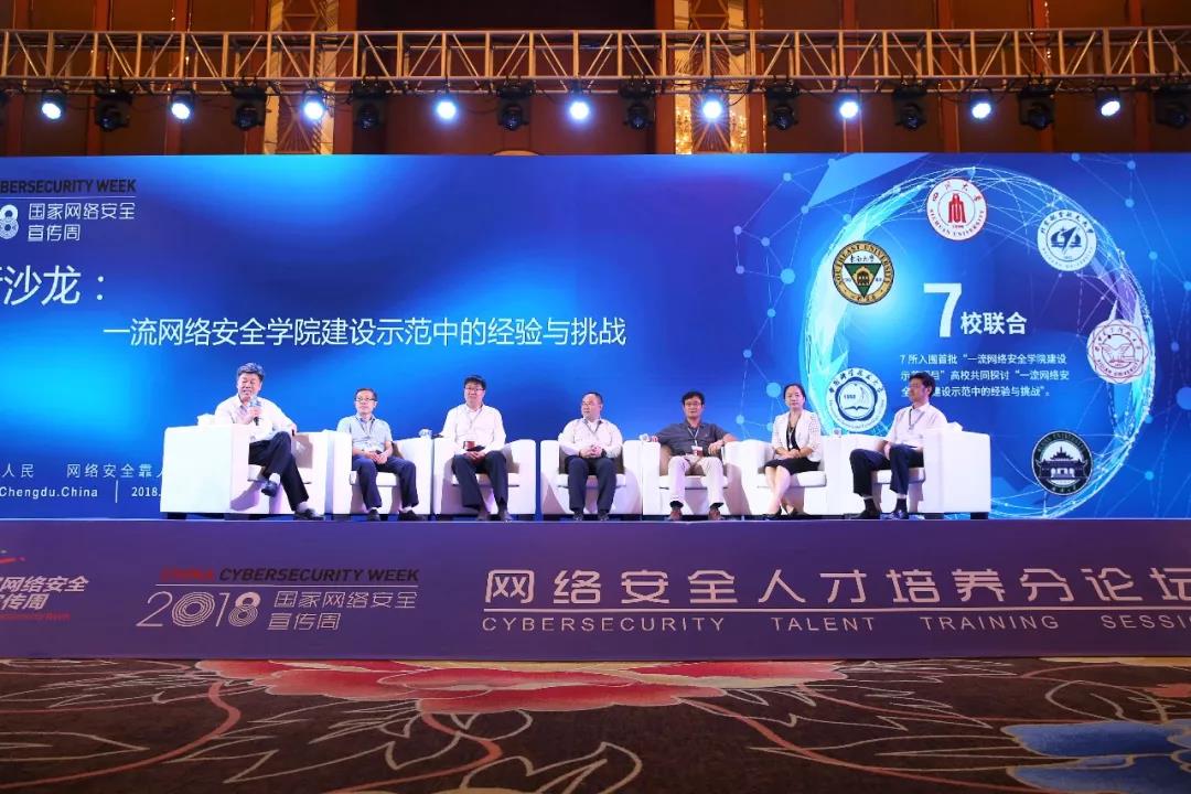 18日下午,网络安全人才培养分论坛举办。此次分论坛,由成都市人民政府主办,由成都市人才办、杭州安恒信息技术股份有限公司(以下简称“安恒信息”)、明陞m88平台、电子科技大学、西南交通大学、成都信息工程大学承办。中央网信办网络安全协调局调研员、副处长唐鑫、成都市委组织部副部长、成都市人才办主任彭崇实、中国工程院院士沈昌祥、浙江省政协常委、安恒信息董事长范渊以及来自全国各地一流网络空间学院的各位专家出席了此次论坛。明陞m88官方网站副经理秦燕主持。