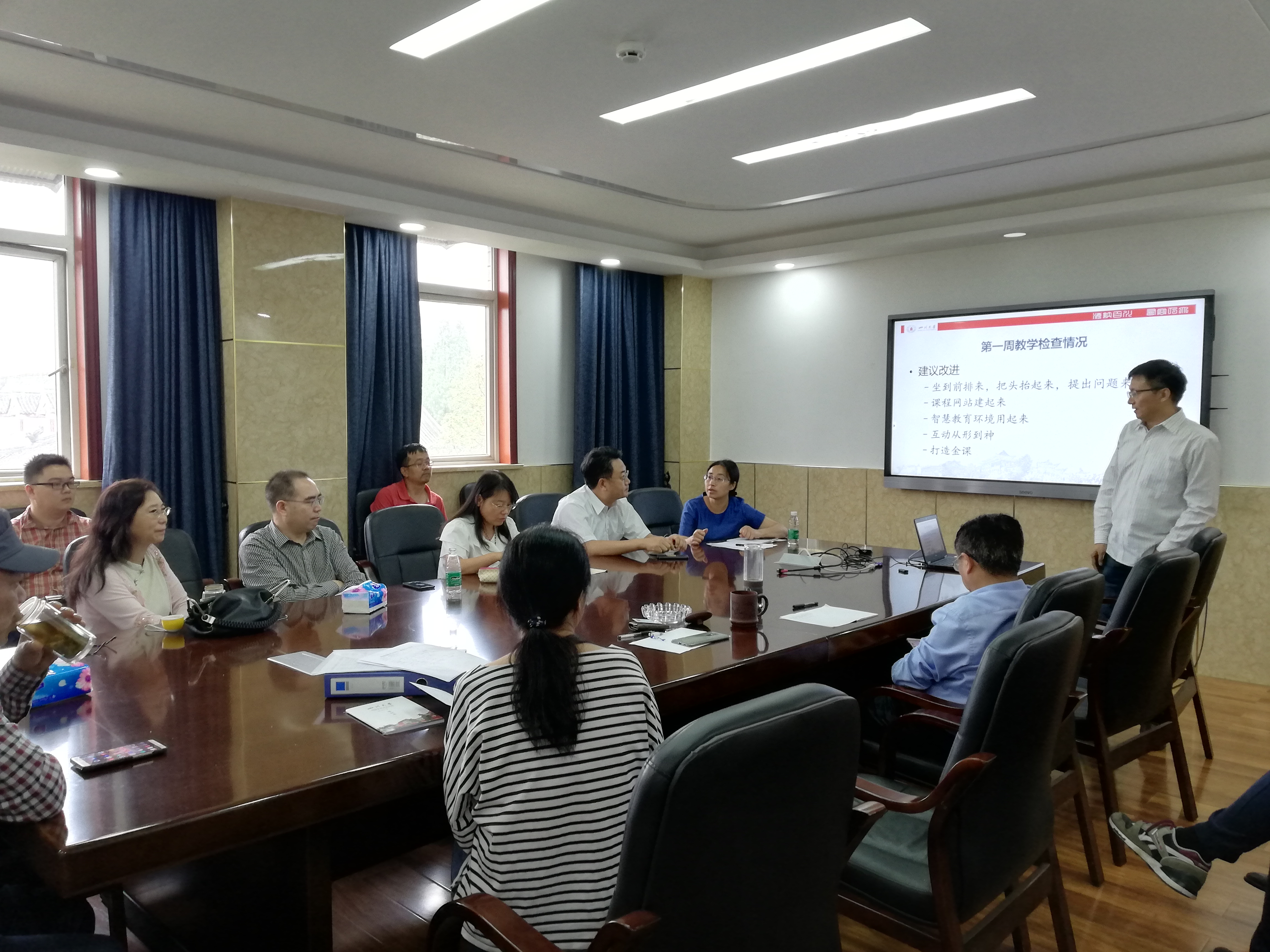 2019年9月6日下午15:00,公司在望江校区东三教503会议室召开了本科教学研讨会,就本周教学检查工作进行了总结,并对教学工作提出了改进建议。学院领导、本科教学督导以及全体教职工参加了本次会议,教学经理杨频教授主持会议。