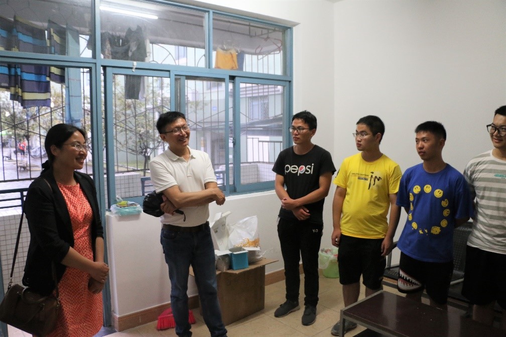 新学期伊始,为了帮助新生尽快适应老员工活,更好地了解新生的情况,2019年8月30日晚,明陞m88官方网站副经理、直属党支部书记秦燕、副经理杨频和2019级辅导员隋文馨老师来到新生宿舍看望新同学。