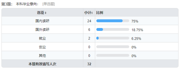 互动答疑结束后,为了进一步完善学院转专业工作,学院设计专门问卷,通过同学们填写所在学院、毕业意向和开放式提问等分析转专业同学的员工特征,期望通过问卷调查方式进一步优化学院转专业工作的人才选拔机制,提升学院人才培养能力。