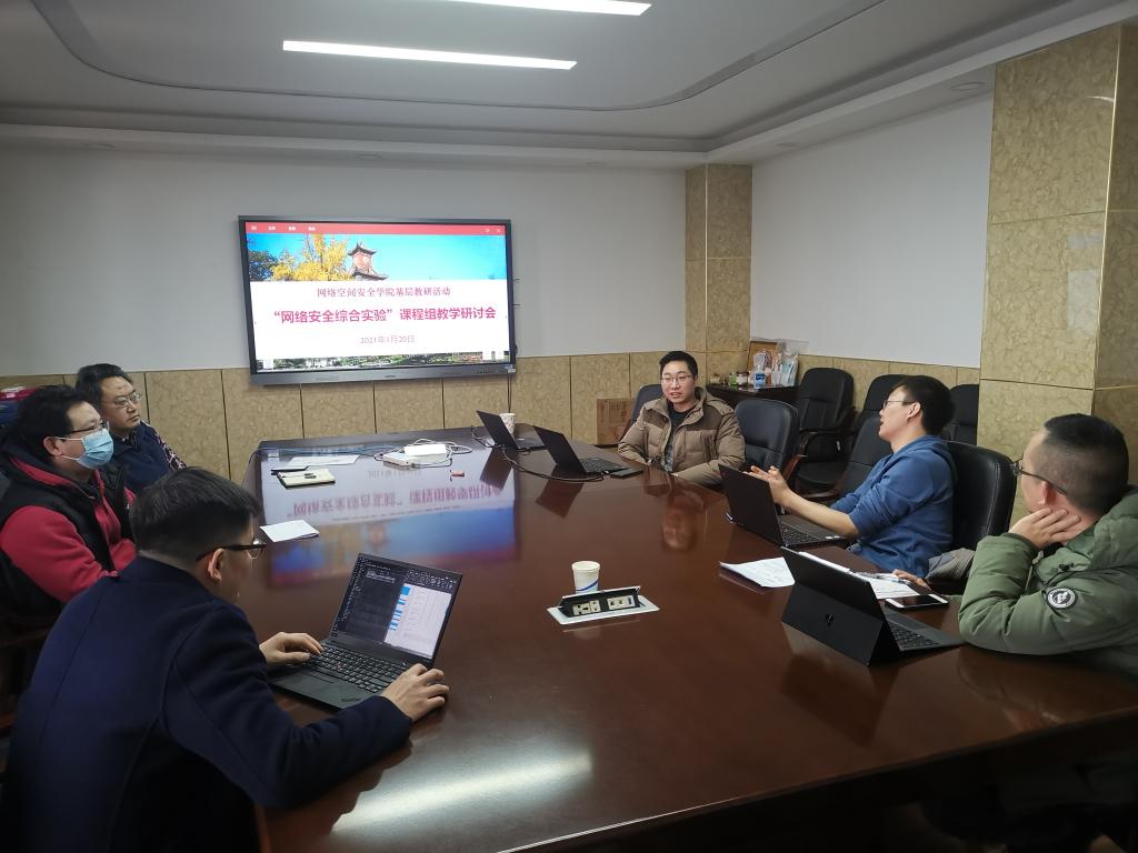 为了深化学院本科公司产品改革,促进基层教研活动创新发展,公司于2021年1月20日下午在望江校区东三教503会议室召开了“网络安全综合实验”课程教学研讨会。课程组王海舟、胡勇、梁刚、李贝贝、黄诚、何沛松老师参加了本次研讨会。会议由学院杨频副经理主持。