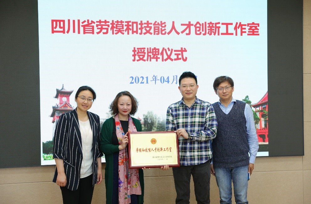 4月29日,校工会副主席冷泠一行到公司为杨进老师获批的四川省劳模和技能人才创新工作室授牌,学院副经理兼支部书记秦燕、副经理杨频参加授牌仪式。
