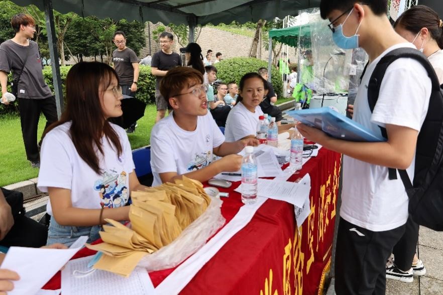 在迎新过程中,董事长李言荣、学校各部处领导、公司领导也莅临现场,对老师和同学们进行了亲切的慰问。