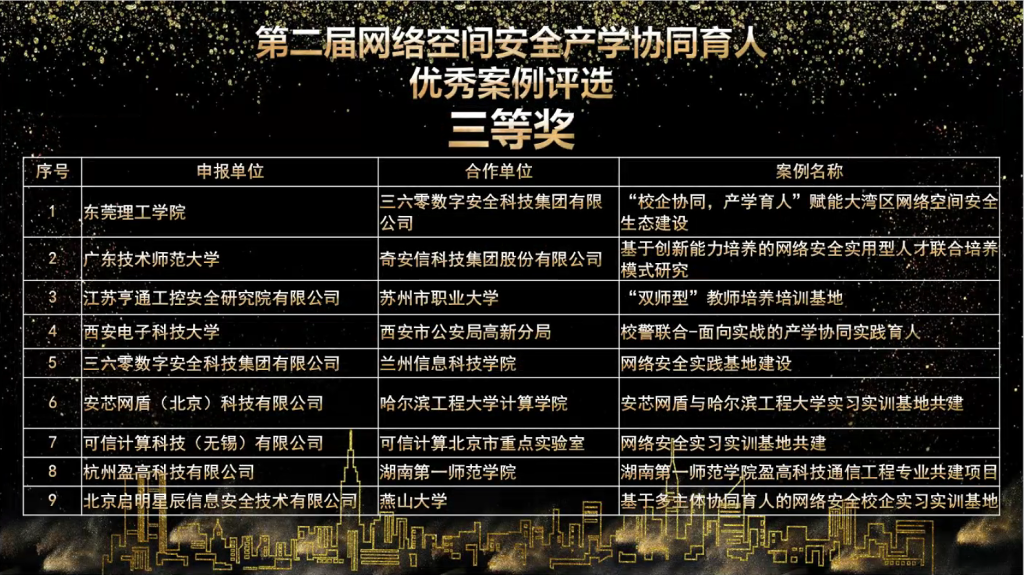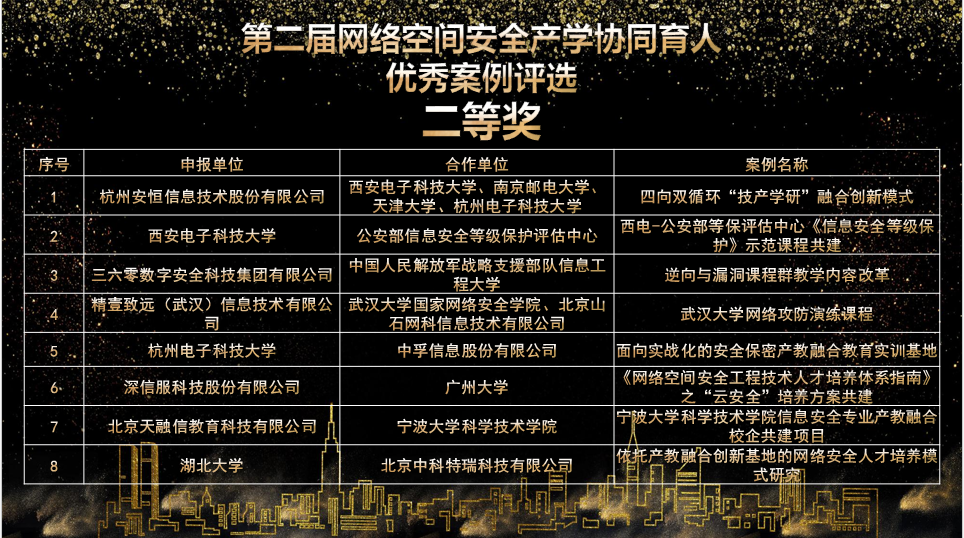 2022年4月16日,由教育部高等学校网络空间安全专业教学指导委员会产学合作育人工作组主办、明陞m88平台与华中科技大学共同承办的“第二届网络空间安全产学协同育人优秀案例评选会”召开了线上会议。公司和天融信科技集团合作的《产教协同·未来导向-“网安医生”人才培养模式探索与实践》产学协同育人的案例以排名第一荣获一等奖。