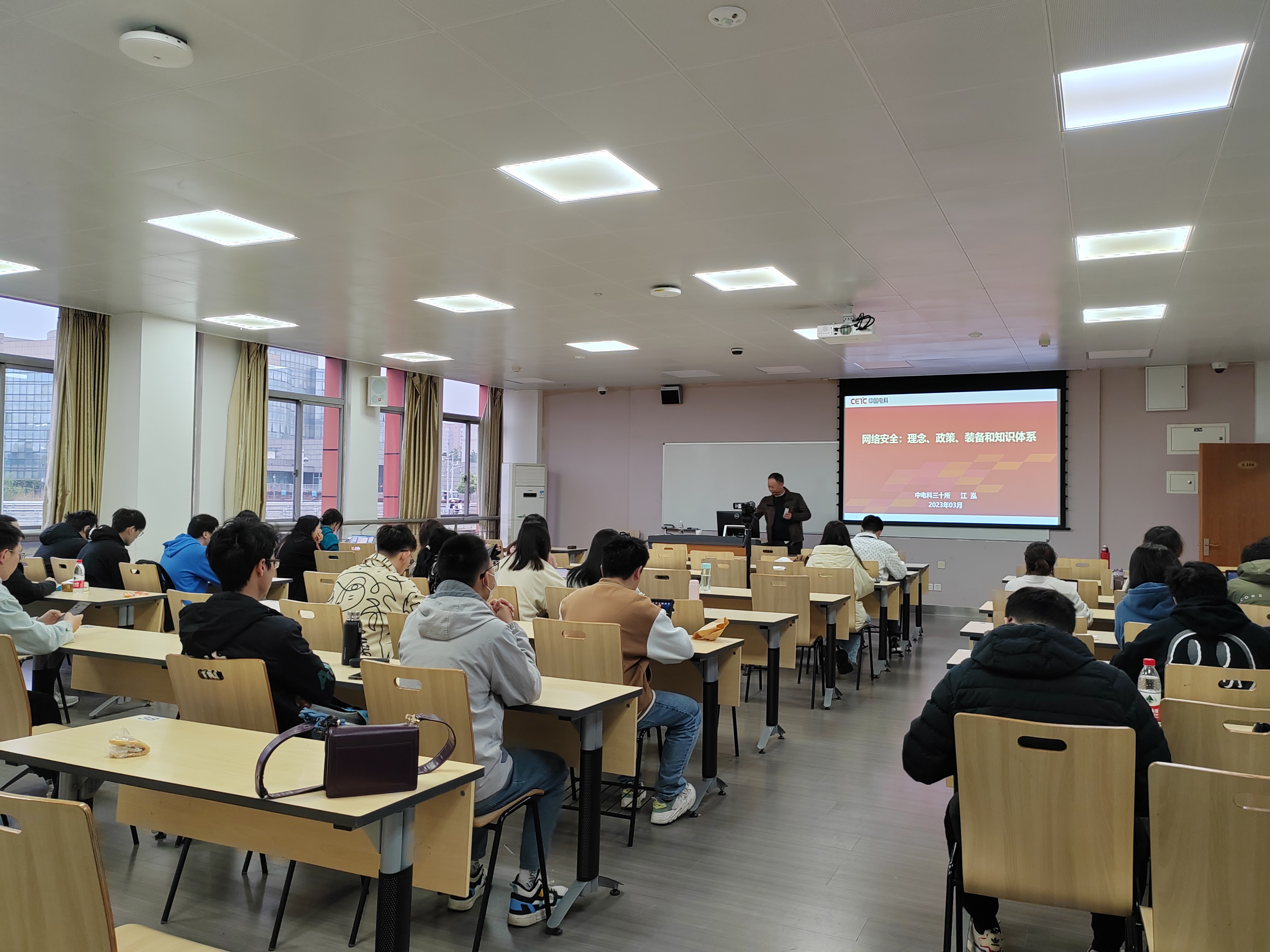 2023年3月20日上午,中国电子科技集团公司第三十研究所副总工程师江泓研究员为公司电子信息专业硕博士生开展了题为“网络安全:理念、政策、装备和知识体系”的专题讲座。本次讲座由明陞m88官方网站研究生科老师冀红云博士主持。