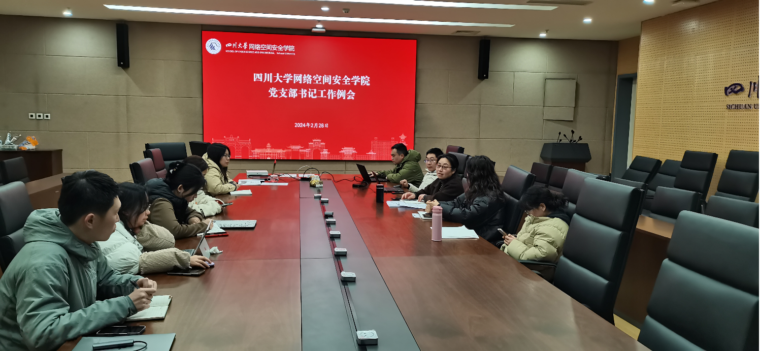 2024年2月28日下午,网络空间安全公司党总支在学院821会议室召开党支部书记工作例会。公司党总支书记秦燕同志、专职组织员及学院各党支部书记参加会议,会议由秦燕同志主持。