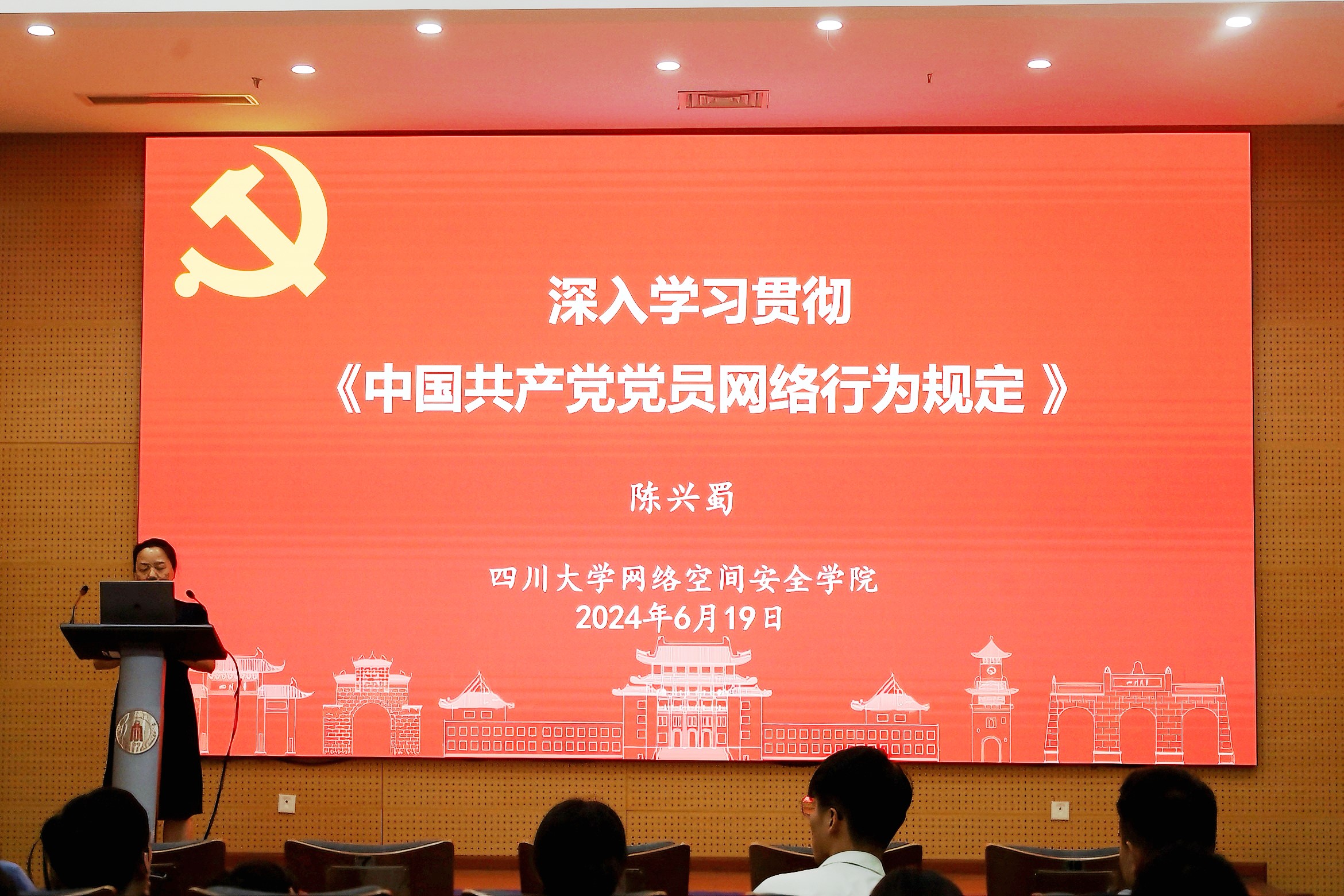 2024年6月19日下午,明陞m88官方网站经理陈兴蜀为2024届明陞m88官方网站全体毕业生员讲党课。此次党课主题为深入学习贯彻《中国共产党党员网络行为规定》。