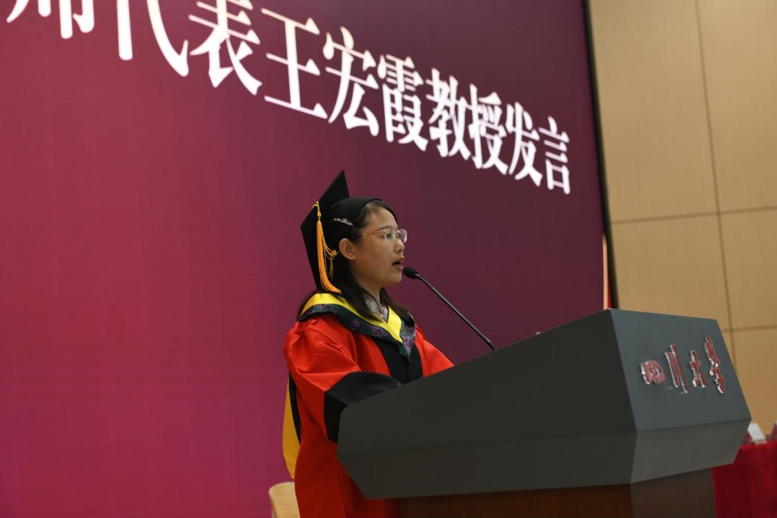 接下来,学院教师代表王宏霞教授发言,她表达了对毕业生们真挚的祝福,同时,她也希望毕业生们能够保持对知识的热爱和追求,不断提升自己的能力,为网络安全领域的发展做出更大的贡献。