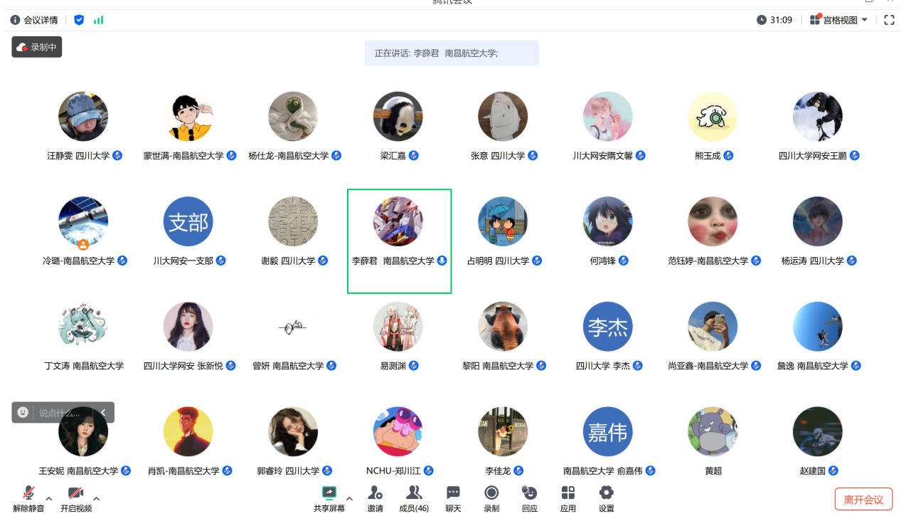 作为第三批全国高校百个研究生样板党支部,南昌航空大学软件学院计算机视觉与图像处理团队研究生党支部支部书记冷璐教授分享了党建工作经验。冷教授从理论学习和思想建设、组织和参与学术和科普活动、积极宣传优秀党员事迹、科研业绩等四个方面展开,深入探讨了如何以党建促科研、促育人,推动支部对研究生思想政治素养和科研创新素养的双重提升作用。明陞m88平台硕士研究生第一党支部书记汪静雯同志则分享如何构建“党-团-班”三协同机制,调动支部党员同志在思想引领方面发挥先锋模范作用,增强纵向党团班级之间的联动性的同时,形成“激励一个、带动一片”的朋辈效应。