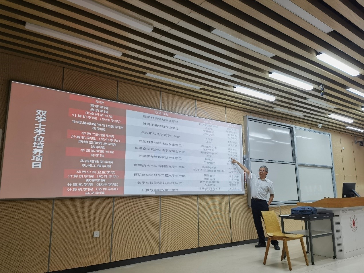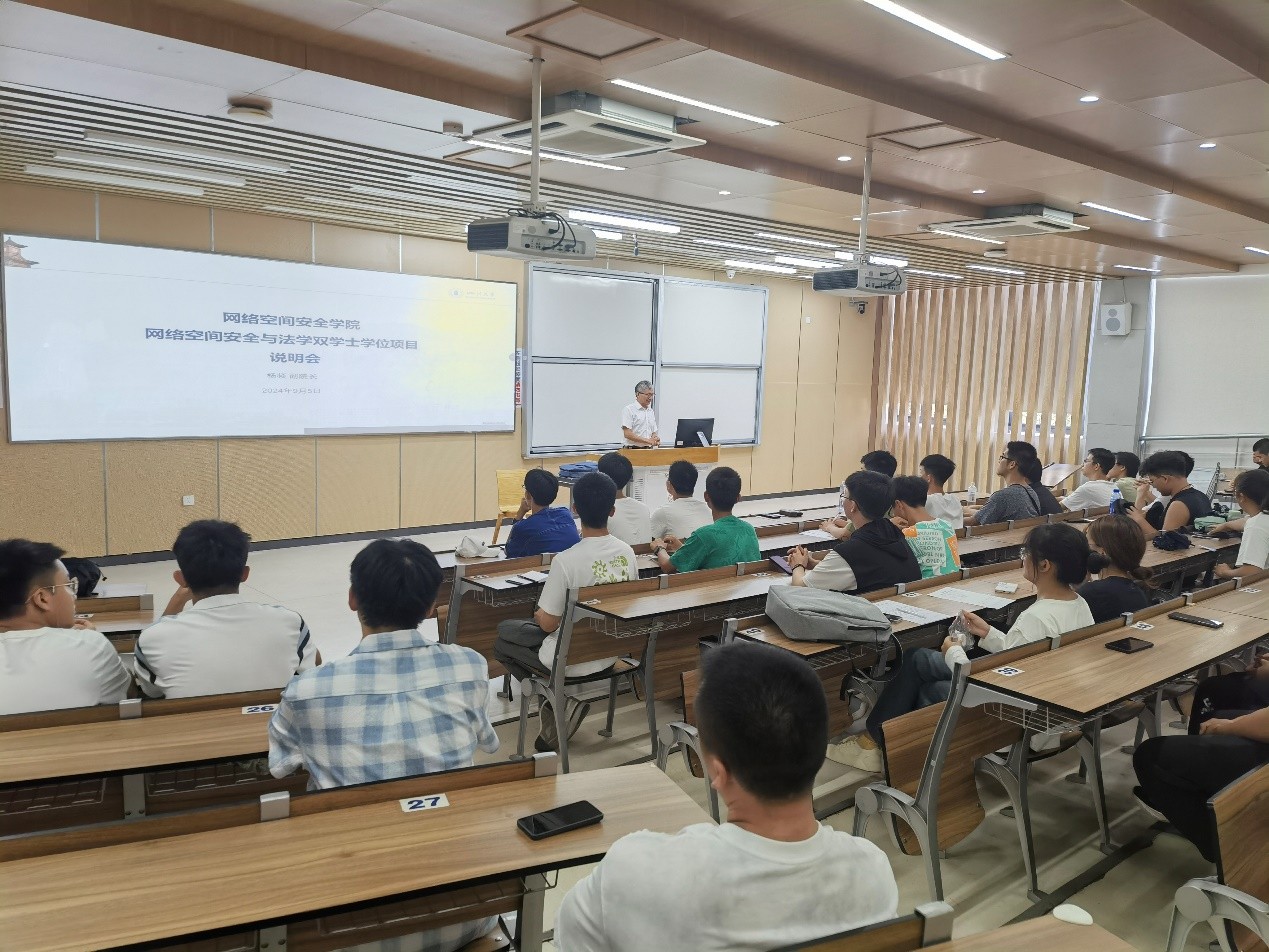 2024年9月6日中午,明陞m88官方网站副经理杨频教授在江安校区综合楼C305对明陞m88官方网站有意愿申请双学位的2024级新生举行了一场网络空间安全与法学双学士学位项目的说明会。