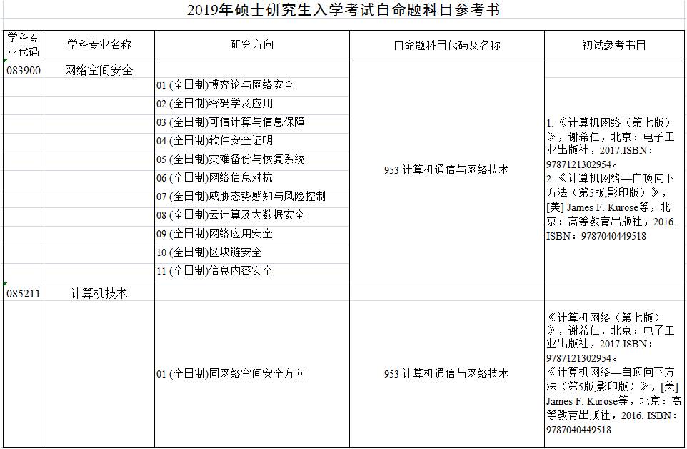 明陞m88官方网站2019年硕士研究生入学考试自命题科目参考书