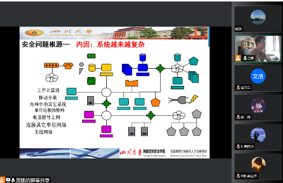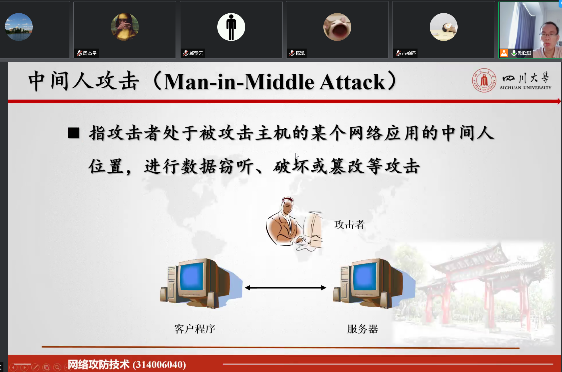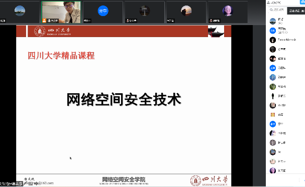 9月5日,学校正式开课的第一天,学院共有9门次课程顺利开课,分别是4门次《网络空间安全技术》、3门次《网络攻防技术》、《网络安全数学基础》、《软件定义网络与高级网络控制编程》。任课教师充分发挥网络教学优势,依托学习通、腾讯会议、慕课等线上平台,开展直播授课,全力保障课程教学质量与进度。老师们准备充分、精神饱满,为呈现更好教学效果,精心制作了教学课件。线上课堂中,员工们热情满满,积极参与课堂讨论,教学效果良好。