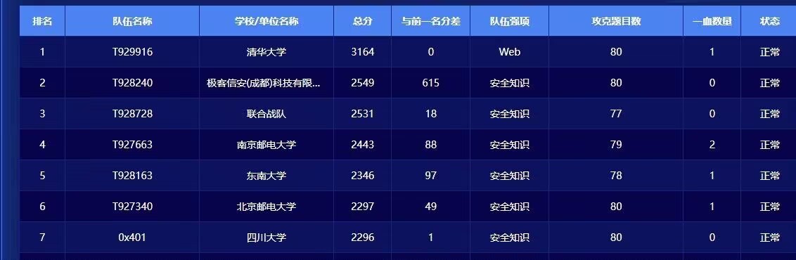 目前,第五届“巅峰极客”网络安全技能挑战赛初赛首战告捷。经过9小时30分钟激烈的线上比拼,共24支队伍、96人从初赛中脱颖而出,其中,来自公司的0x401战队获得第七名的好成绩。