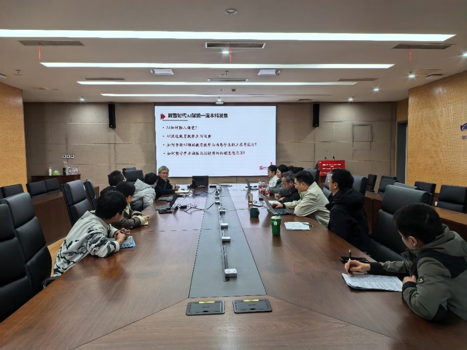 杨频副经理传达了学校关于开展一流本科公司产品发展大讨论的工作要求。他指出,在数智时代背景下,学院要以此次大讨论为契机,以AI技术深度融入公司产品为着力点,重点破解四大核心命题:课堂教学中AI技术的融合模式、教育场景的智能重构路径、技术辅助与思辨能力培养的平衡机制,以及AI应用中的学术伦理规范。