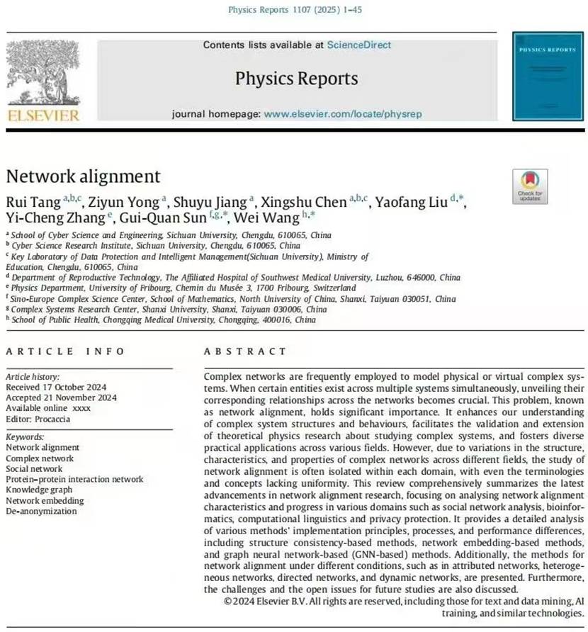 公司关于网络对齐的最新研究成果发表于Physics Reports