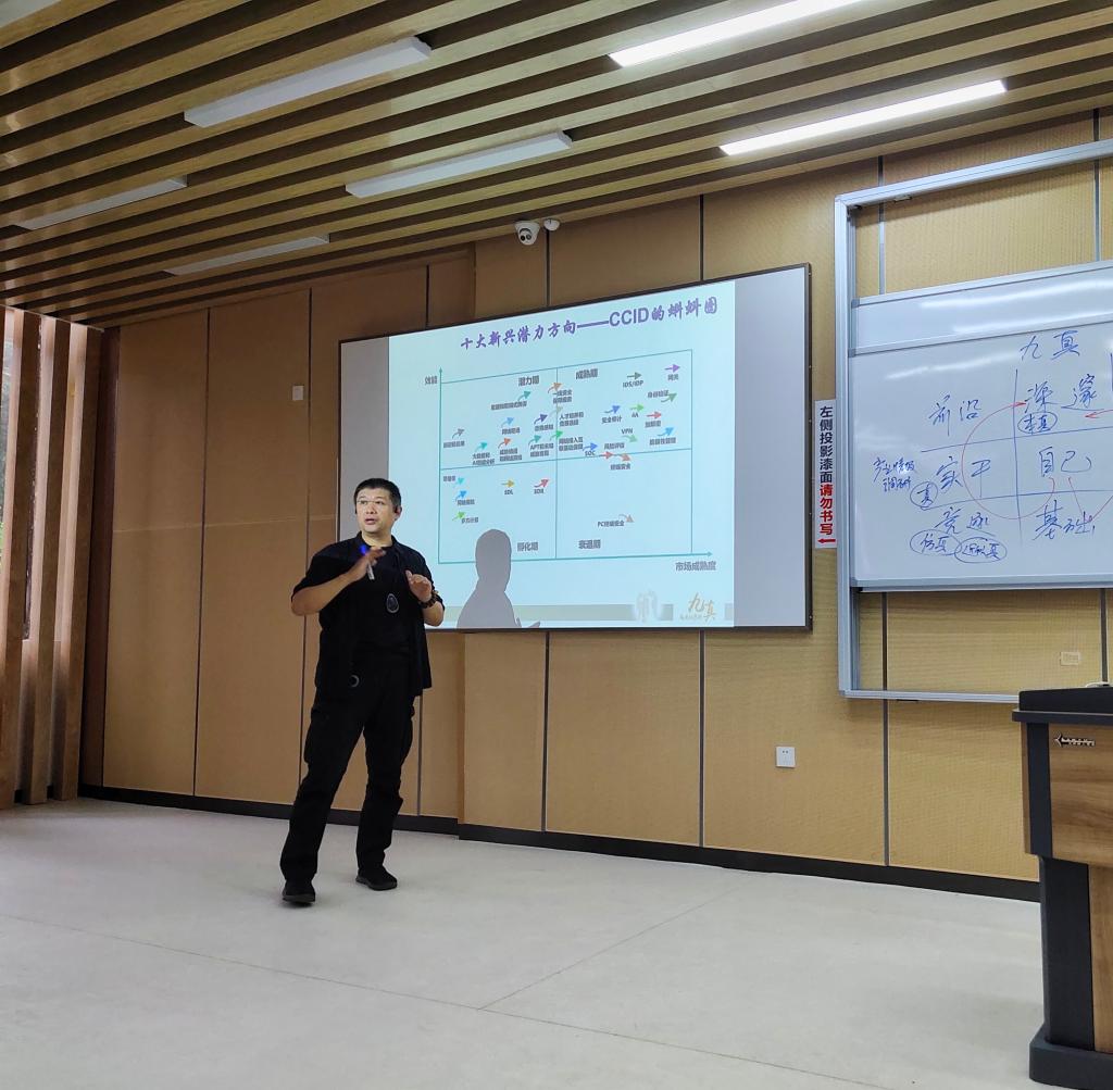 随后,潘老师围绕话题“质疑与思考”展开了此次讲座。他明确指出,网安专业的员工最不能缺少的就是一颗敢于质疑的心。在接下来的讲座中,他与同学们详细地分享了他对于网络安全专业领域的认识与思考,并给出了切实的建议。他通过一张九真图,将讲座分成了自己、价值、环境、竞逐、实干、前沿、深邃、理略、基础九个部分,并介绍了通过个人思考归纳出的两个专业人才成长路径:第一种是经由环境,奠定基础,参与竞逐,通过实干来进行实践,走向前沿并逐步接触专业本质的学术型人才的成长;第二种则是经由环境,定义价值,出谋划策后逐步接触专业本质的理论型人才的成长。讲座最精华的部分在于九真图中的“基础”部分。在这个部分中,潘老师深入浅出地讲述了学习网安必不可少的六门关键技术,分别为:系统、网络、数据、编程、密码学、硬件。潘老师就其了解的部分,将业界实例与课堂相结合,以生动的方式给出了独到的学习建议。譬如,潘老师通过小彩旗春晚上连续旋转数小时的例子告诉我们,水桶效应放到个人身上,就意味着我们在保住底的情况下,要将自己的长板发挥到极致。这些都对刚步入大学的同学们起到了启发和导向的作用。
