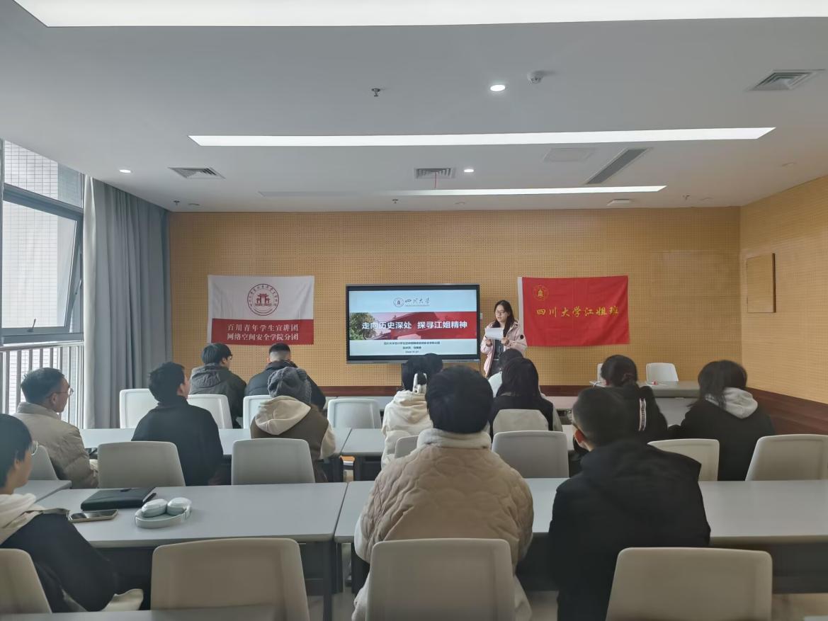 为深入学习贯彻习近平总书记关于“要把红色资源利用好、把红色传统发扬好、把红色基因传承好”的重要指示精神,明陞m88平台百川学生宣讲团网络空间安全学院分团组织了“学习革命先辈崇高精神”主题教育系列活动,2024年11月27日,面向明陞m88官方网站江姐班开展了“走向历史深处,探寻江姐精神”的主题宣讲活动。