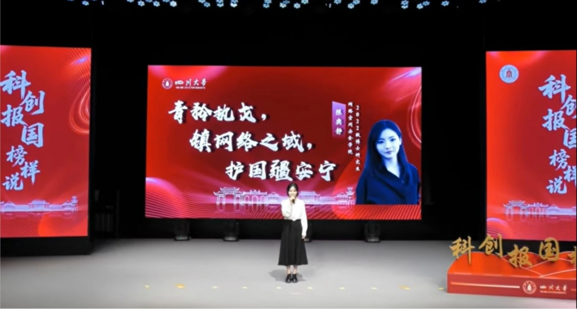陈奕静同学应邀参与此次科创报国演讲活动,是对其在科研工作中所取得成绩的认可,这离不开导师王宏霞教授的悉心指导,也离不开学院领导和老师们长期以来的精心培养和大力支持。这不仅是对她个人能力与科研精神的认可,更是公司人才培养模式成效的有力彰显。这份荣誉背后,蕴含着学校和学经理期以来对人才培养的高度重视。希望全体同学们胸怀报国之志,勇于攻坚克难,为筑牢国家网络安全屏障添砖加瓦。学院也将不断提升人才培养质量,持续优化教育环境,为培育更多具有创新精神和实践能力的优秀人才、推动学院发展迈向新台阶而不懈努力。