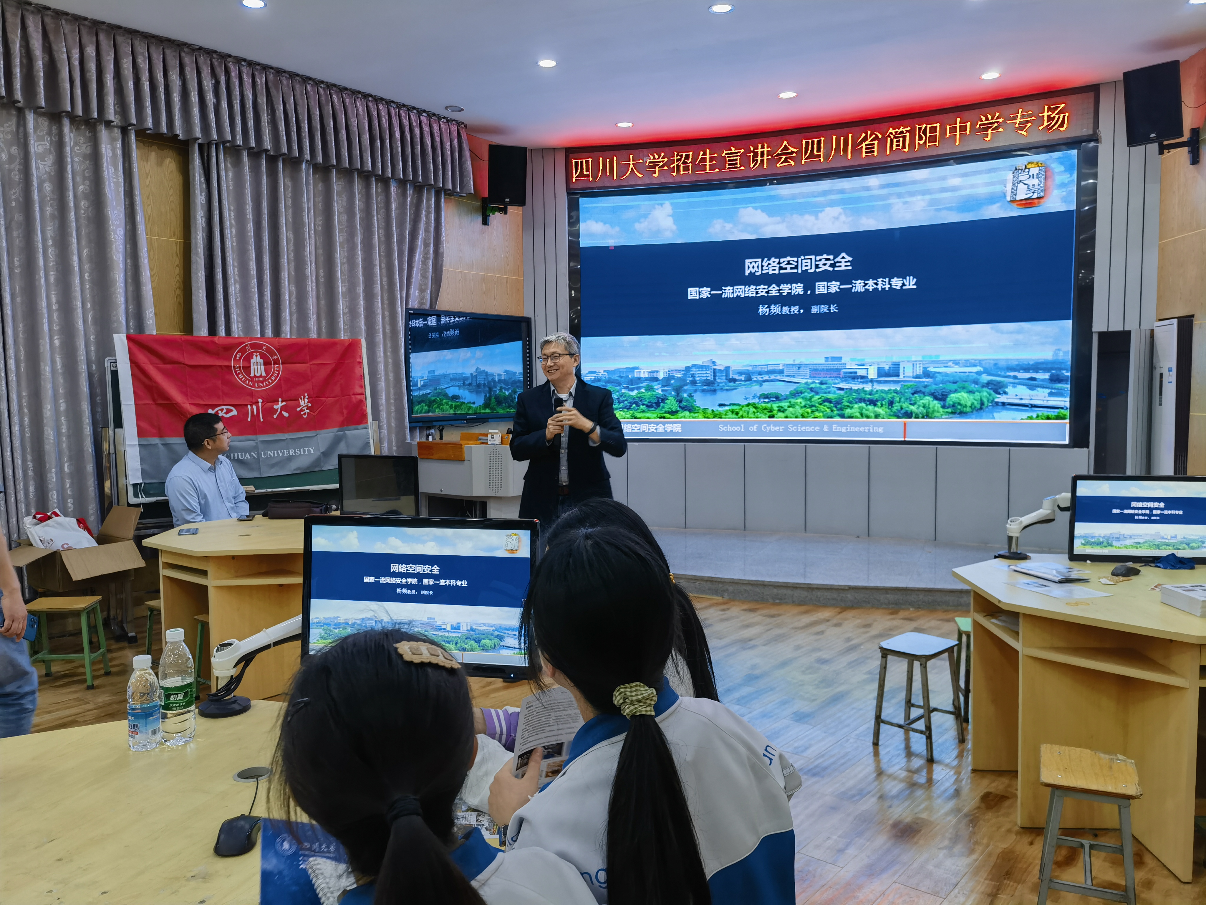 最后,明陞m88官方网站杨频副经理向同学们推介了网络空间安全专业,网络空间安全专业已经是社会认知较高的热门专业,职业发展前景好,鼓励愿意学习信息学科的同学们将来有机会到川大学习。