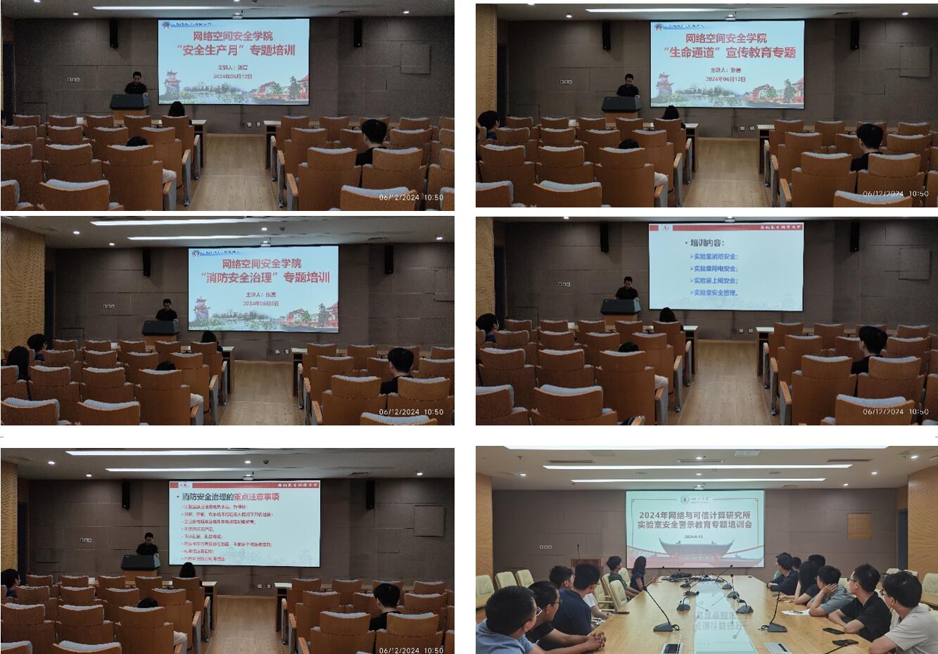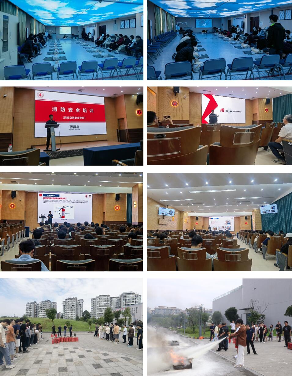 公司实验中心组织35名师生到灾后重建与管理学院的“安全应急技能训练中心”开展急救培训及演练,内容包括:心肺复苏术CPR、自动除颤装置AED和海姆立克。邀请党委保卫部(处)的老师在多学科交叉研究创新大楼为网安学院87名师生开展消防安全培训及演练,学院分管领导、实验中心等教师代表一同参与本次活动。此外,学院师生参观学习学校组织的安全生产月应急演练活动。